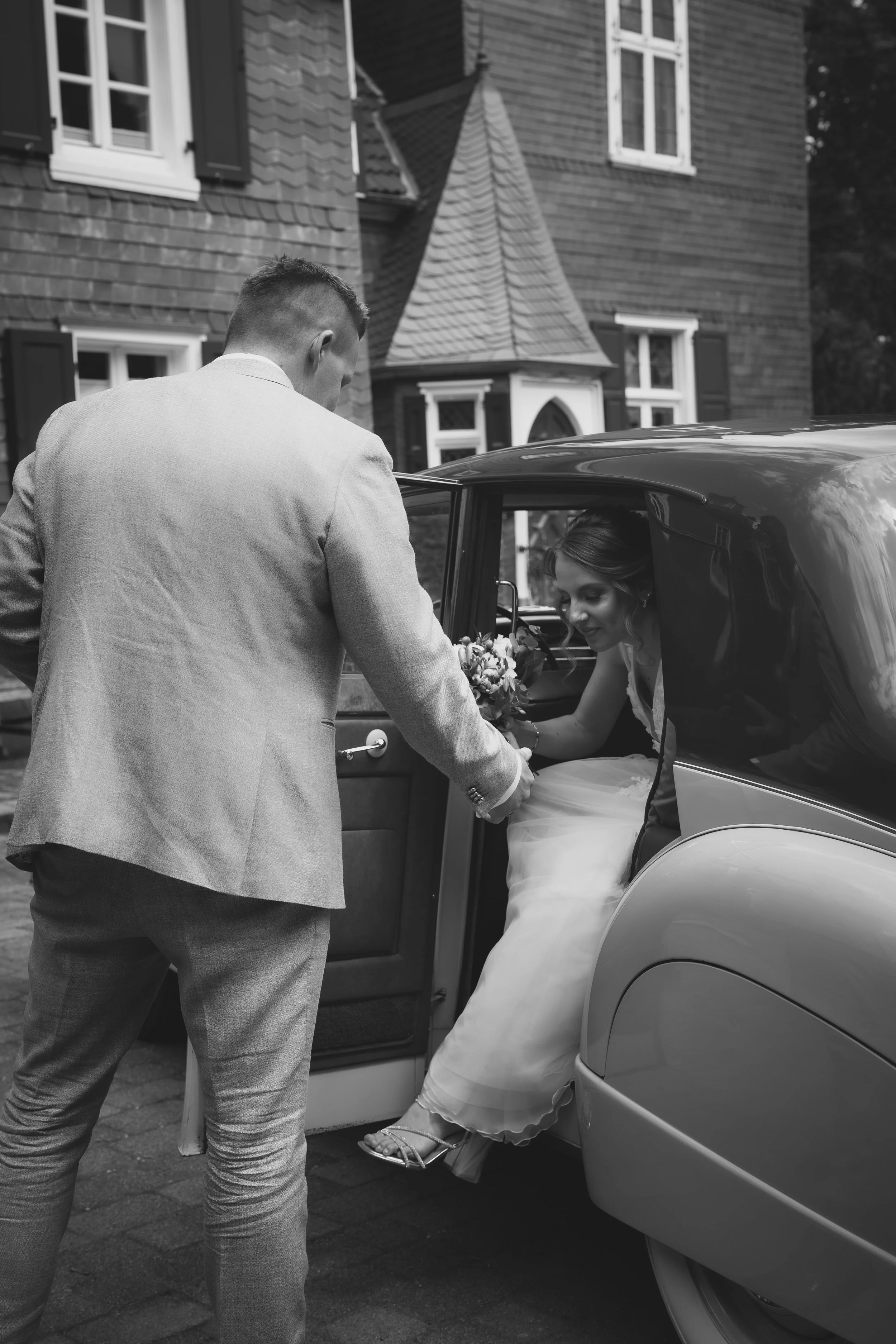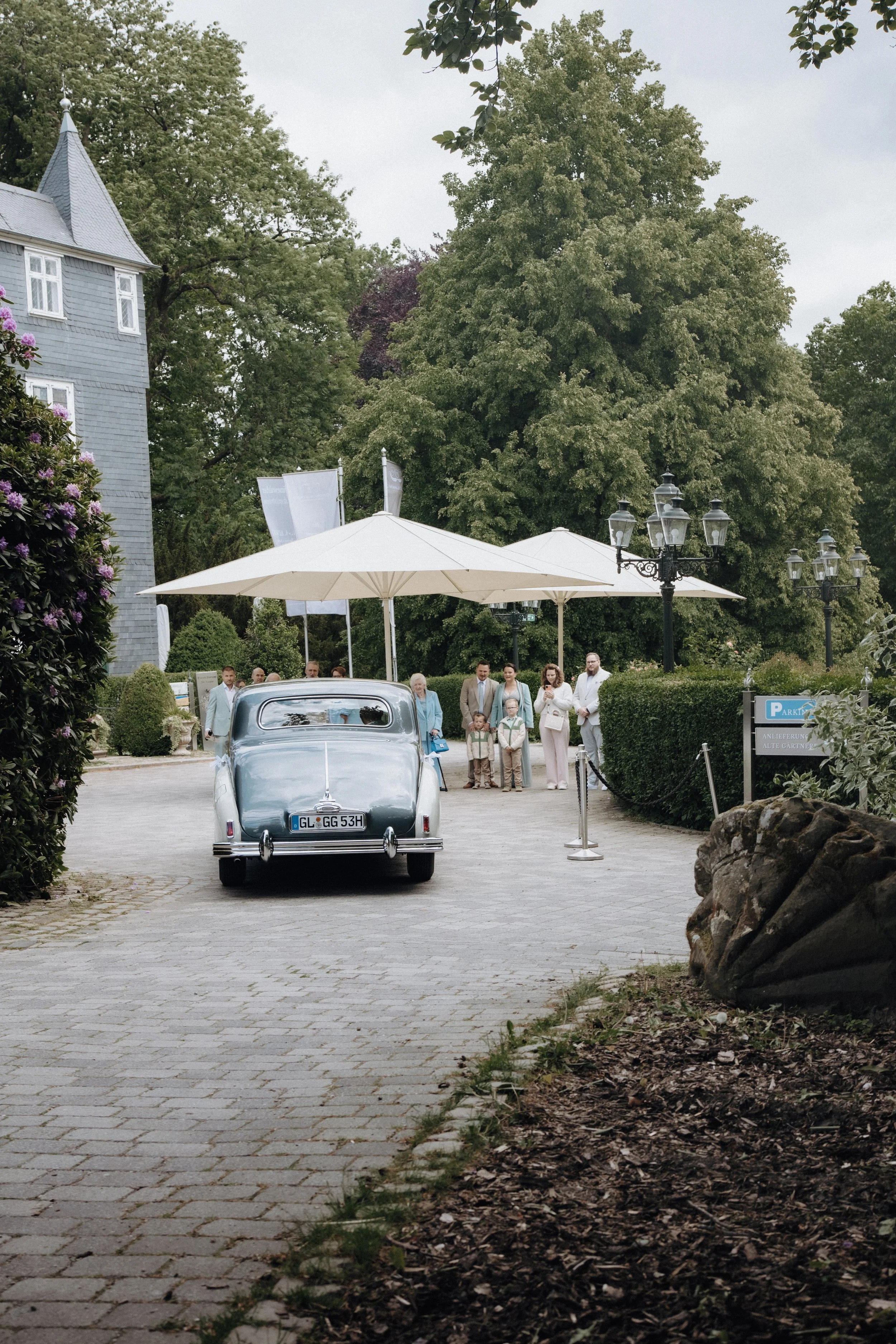 Die standesamtliche Trauung von L&M im Haus Kirschheide in Solingen war etwas ganz Besonderes. Der parkähnliche Vorhof lädt zum anschließenden Sektempfang geradezu ein.